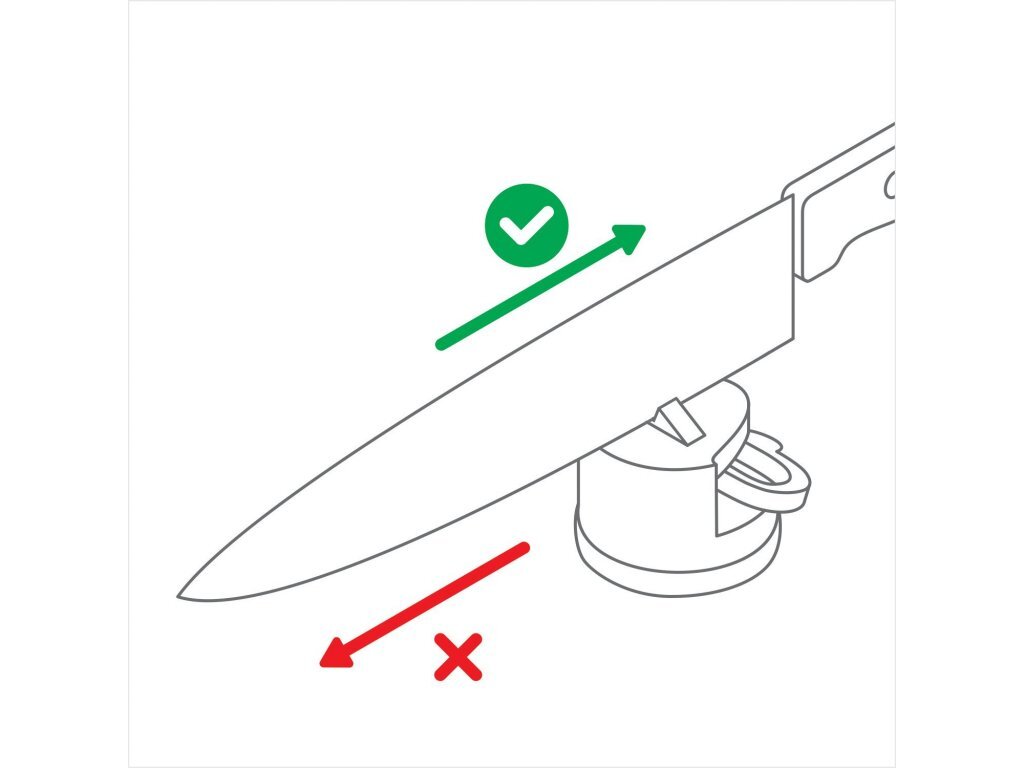 L'affûtage est effectué par des mouvements doux du couteau sur les mâchoires en acier. Les mâchoires forment un angle de 20° et sont traitées au carbure de tungstène. Le taille-crayon peut aiguiser n'importe quel couteau en acier, y compris ceux plus chers en acier trempé et même les couteaux à lame dentelée (comme les couteaux à pain et les couteaux de chasse). Cela le distingue de la plupart des fusils et aiguiseurs que vous avez pu utiliser.