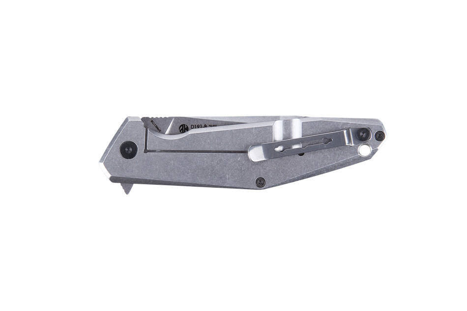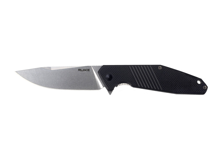 La lame est fabriquée en acier 8Cr13MoV avec une finition Stonewash. L'acier subit un traitement cryogénique dans l'usine RUIKE pour améliorer ses propriétés. Elle s'ouvre grâce à un Flipper et est maintenue en position ouverte par un mécanisme Frame Lock. Le manche est composé de deux types de matériaux. La plaquette avant est en G10, avec une texture fine pour une meilleure prise en main, tandis que la partie arrière du manche est en acier inoxydable. À l'extrémité du manche se trouve un trou pour une lanière. Le couteau est équipé d'un clip pour le port en poche.