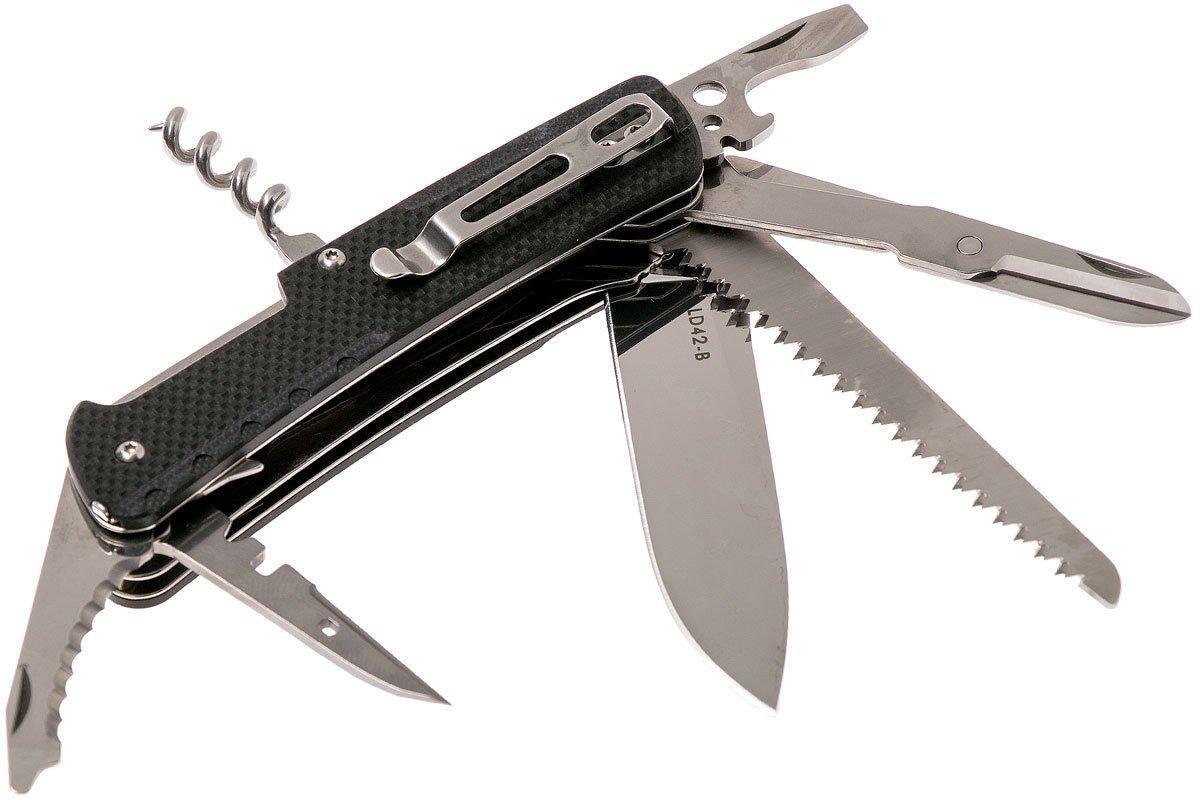 Le Ruike LD42 est un couteau de poche multifonction qui, à première vue, rappelle la marque suisse emblématique. Le Ruike LD42 vous offre un couteau de poche avec une double sécurité. La lame est traditionnellement sécurisée par un mécanisme à ressort slipjoint, et en plus, Ruike a ajouté un verrouillage linerlock. La lame est fabriquée en acier suédois Sandvik 12C27.