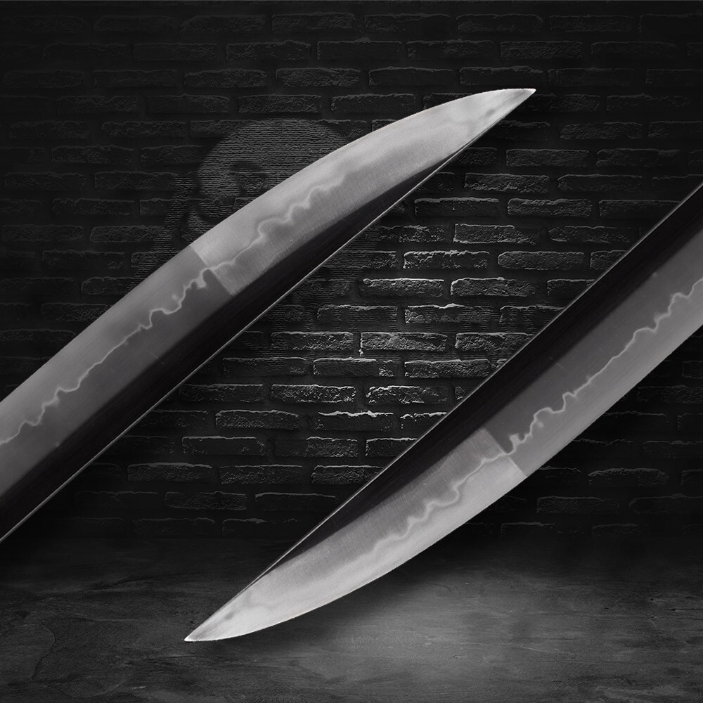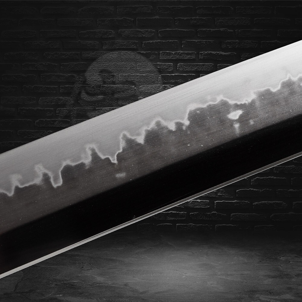 Une lame forgée à la main en acier T-10 de la plus haute qualité. Laminée dans une configuration monocomposite Mar, elle est très résistante et conserve parfaitement son tranchant. La lame sans bo-hi a été polie à la main avec une pierre hazuya dans la phase finale, atteignant ainsi un tranchant presque rasoir et un éclat miroir. Le véritable CHOJI hamon est formé selon les anciennes méthodes de trempe traditionnelles, basées sur de nombreuses années d'expérience du maître forgeron. Tout sur ce sabre est fabriqué individuellement, y compris le saya et le habaki. Les meilleurs composants ont été utilisés dans sa fabrication, y compris un laque de haute qualité pour le saya, de la soie japonaise et du cuir de raie véritable.