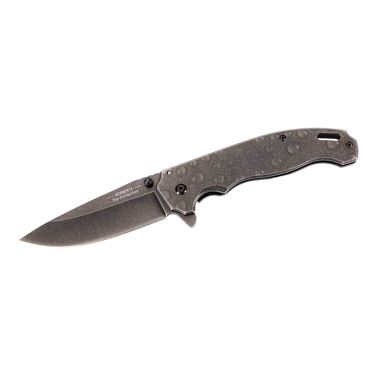 La lame Drop Point en acier inoxydable 440 noir de haute qualité a une ouverture double face. La construction de la poignée en acier inoxydable dans le traitement des gouttes d'eau est équipée du mécanisme Frame-Lock éprouvé. Comprend une lanière et un fermoir de poche. Livré avec un étui en nylon dans une belle boîte cadeau.