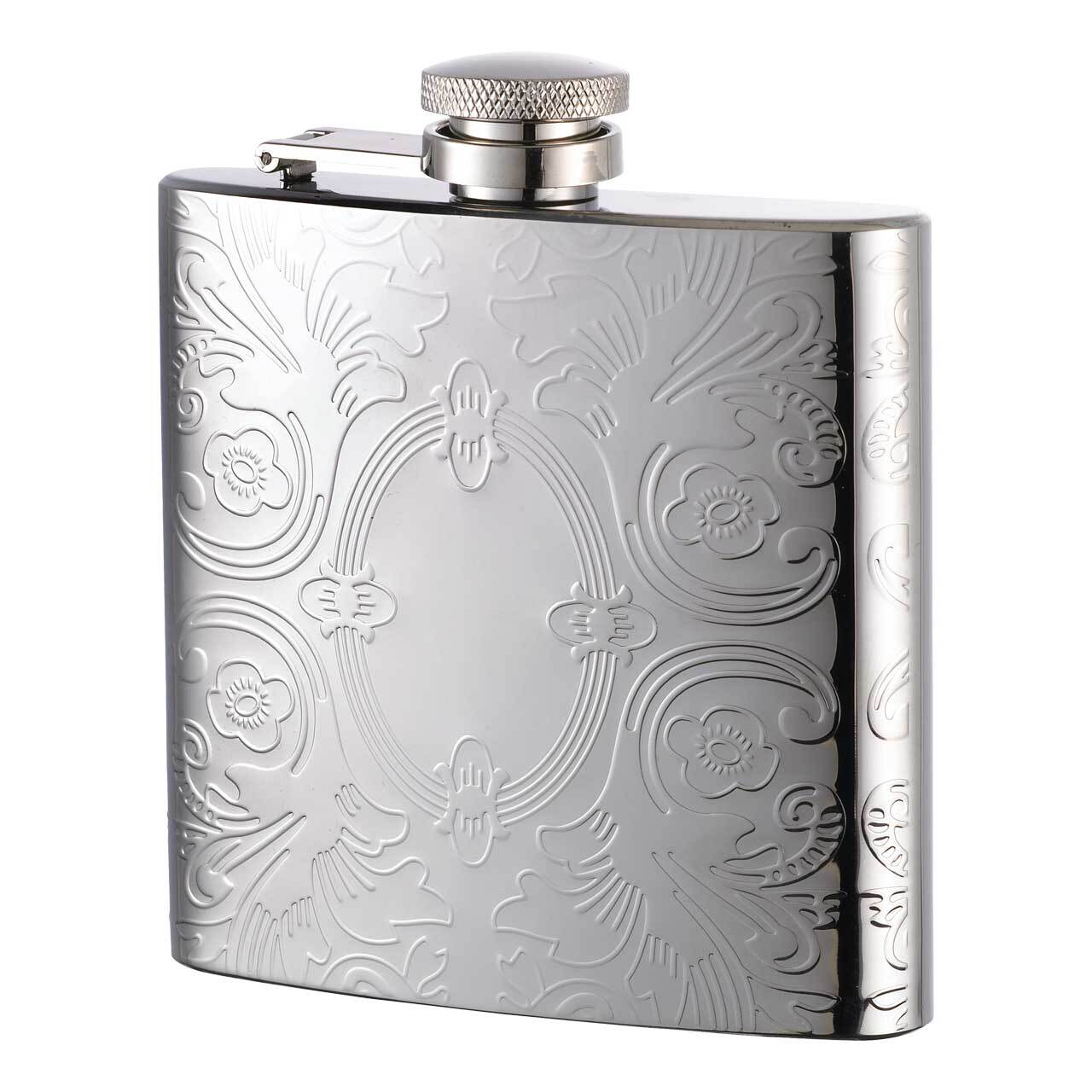 Herbertz Flasque de poche Herbertz, 170 ml, acier inoxydable, poli, motif floral, fermeture sécurisé