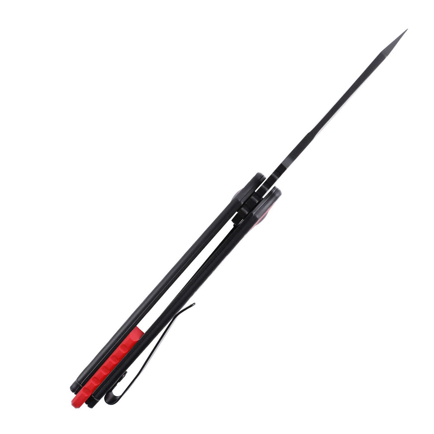 La lame en acier de qualité CPM 3V s'ouvre grâce à un flipper et est maintenue en position ouverte par un mécanisme Liner Lock. Le manche est fabriqué en fibres de carbone. À l'extrémité du manche se trouve un trou pour une lanière. Le couteau est équipé d'un clip pour le port en poche.