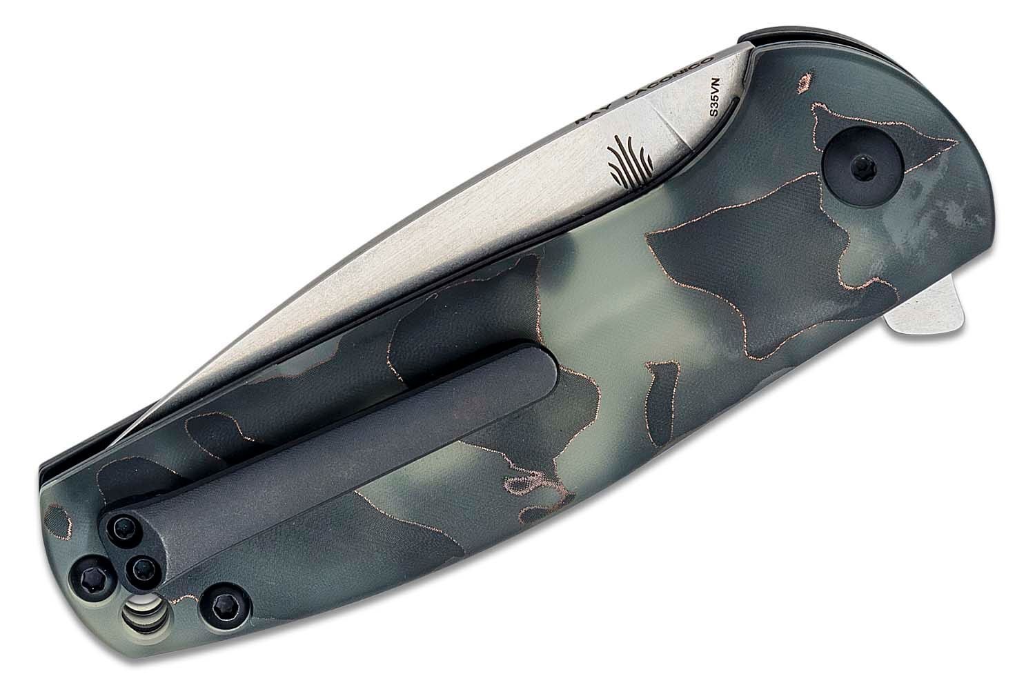 La lame en acier de haute qualité CPM-S35VN s'ouvre grâce à un flipper et est maintenue en position ouverte par un Liner Lock. Le manche est fabriqué en matériau Raffir Nobble. À l'extrémité du manche se trouve un trou pour une lanière. Le couteau est équipé d'un clip pour le port en poche.