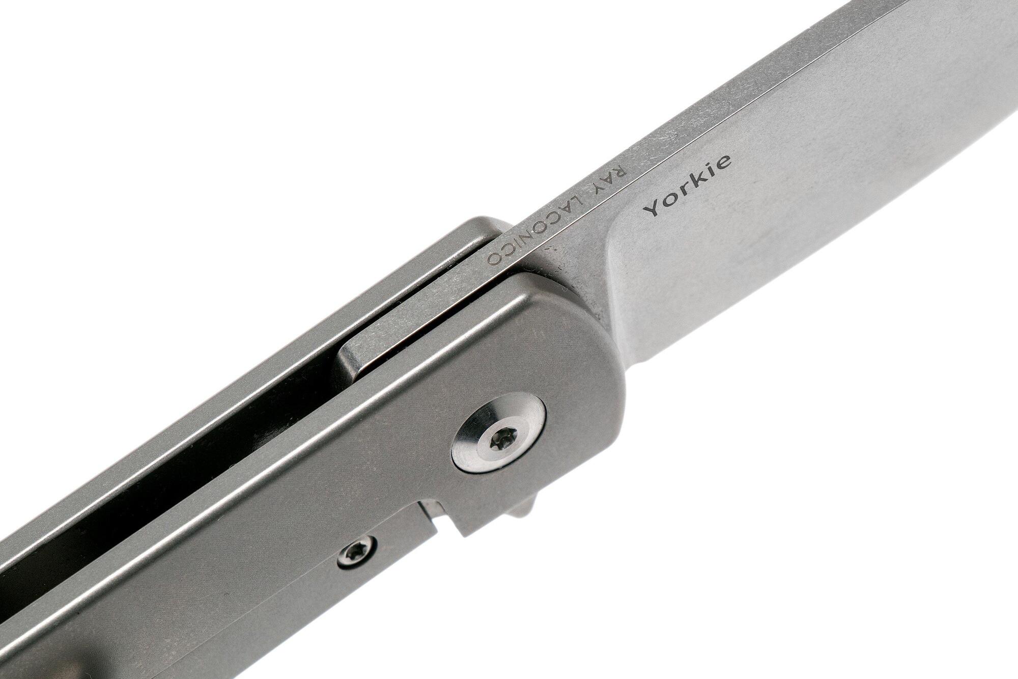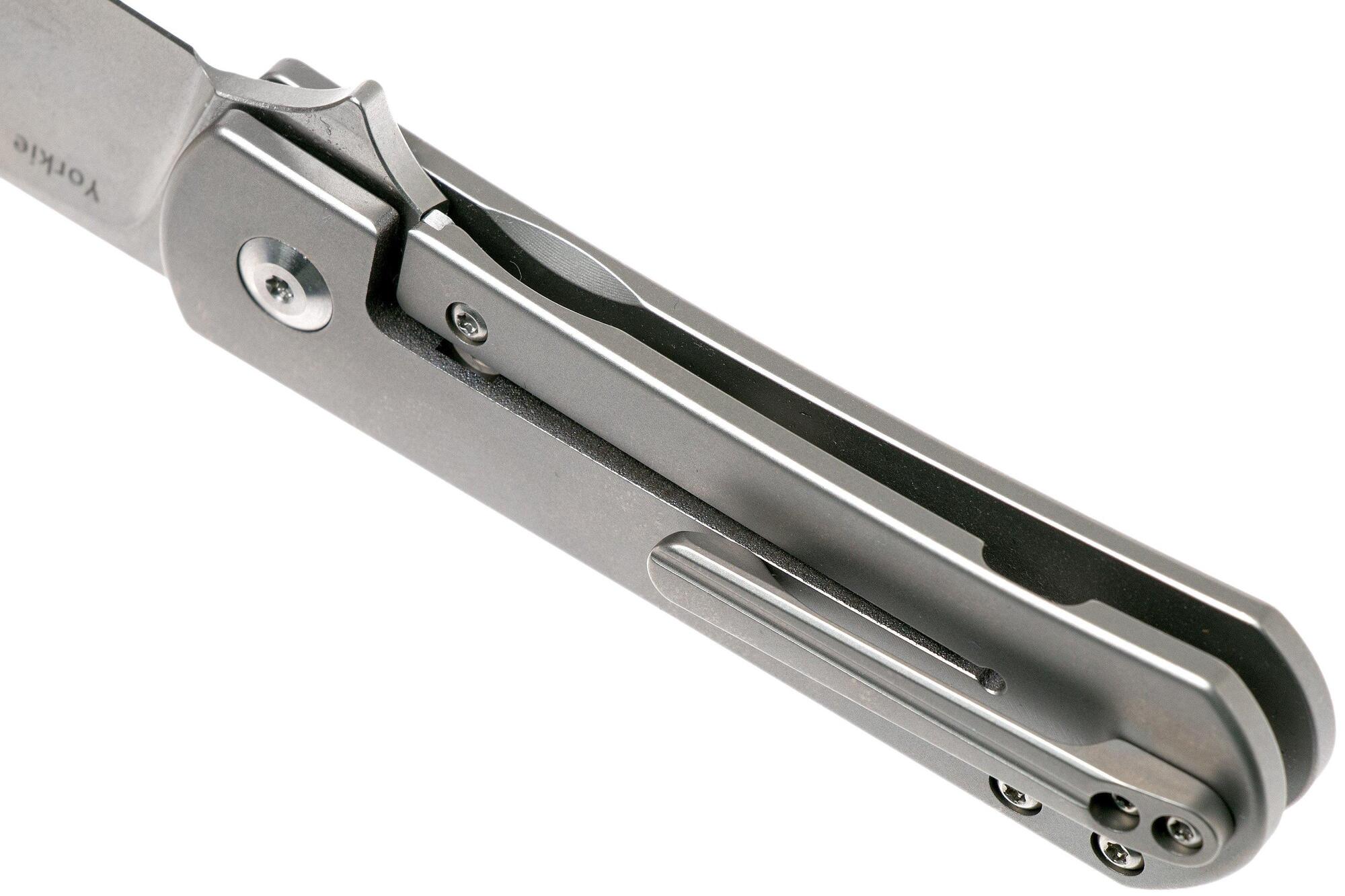 La lame, fabriquée en acier de qualité CPM-S35VN, s'ouvre grâce à un flipper et est maintenue en position ouverte par un Framelock. Le manche est en titane. Le couteau est équipé d'un clip pour le port en poche.