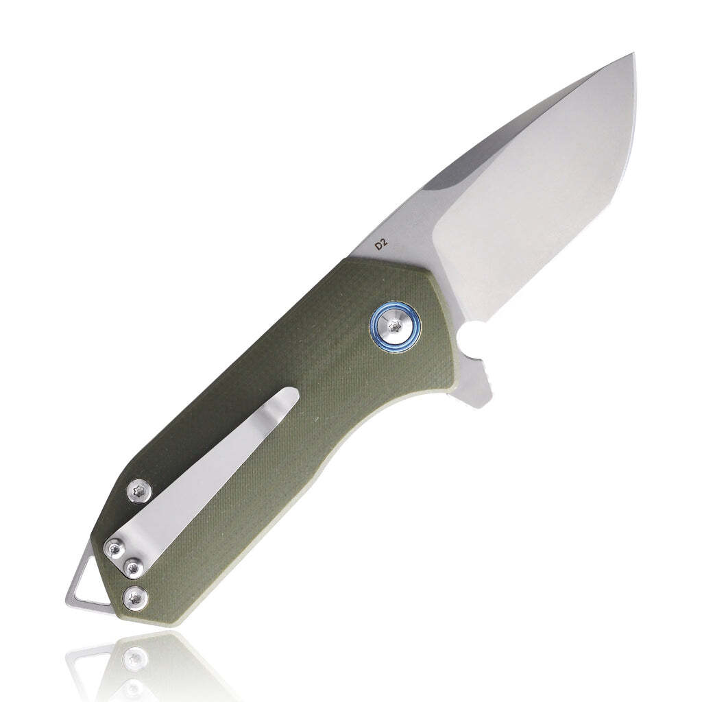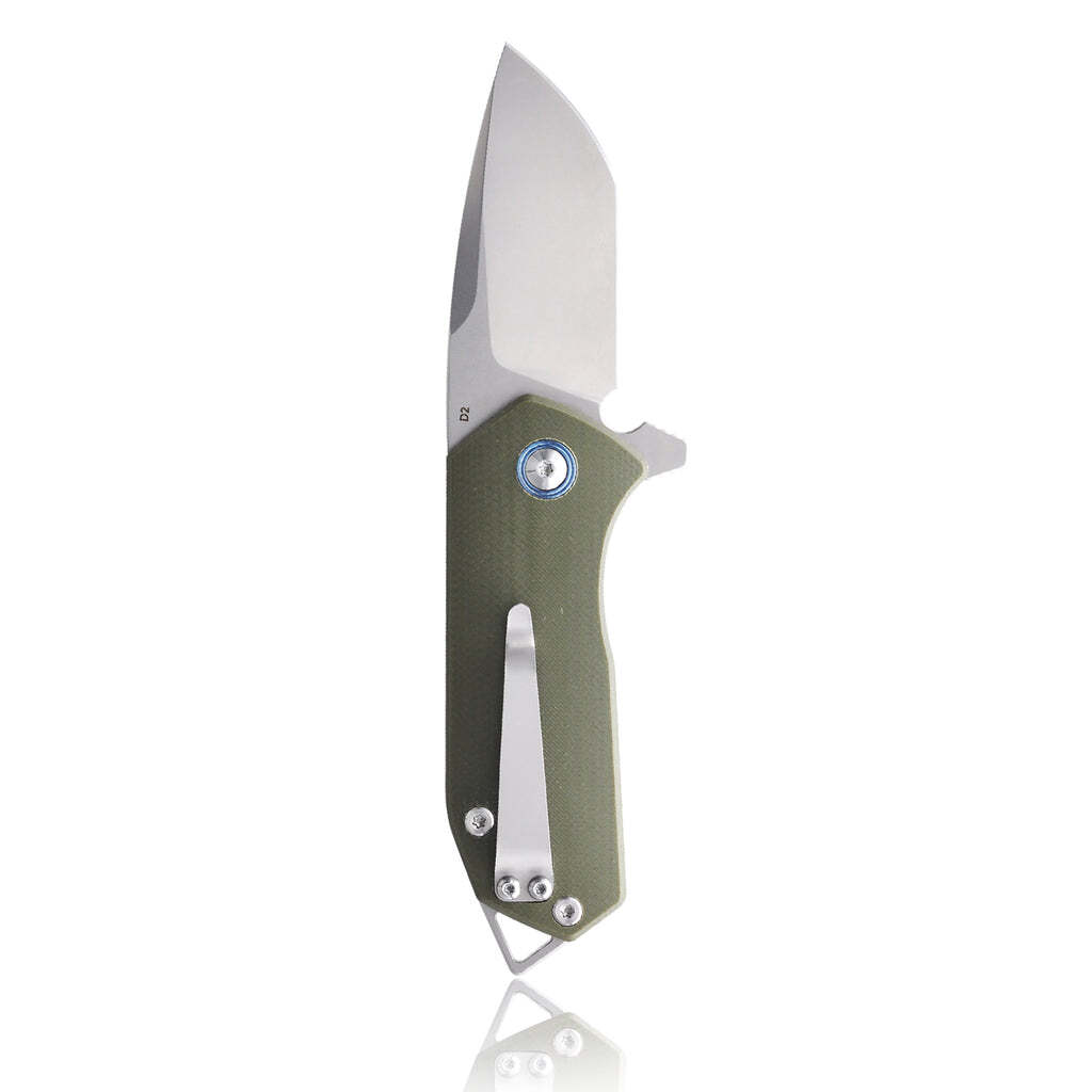 La lame en acier D2 s'ouvre grâce à un flipper et est maintenue en position ouverte par un Liner Lock. Le manche est fabriqué en matériau résistant G10. À l'extrémité du manche se trouve un trou pour une lanière. Le couteau est équipé d'un clip pour le port en poche.