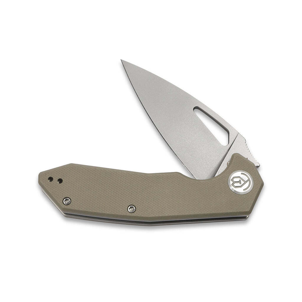 La lame en acier D2 s'ouvre grâce à un trou dans la lame et est maintenue en position ouverte par un mécanisme Liner Lock. Le manche est fabriqué en matériau résistant G10. Le couteau est équipé d'un clip pour le port en poche.