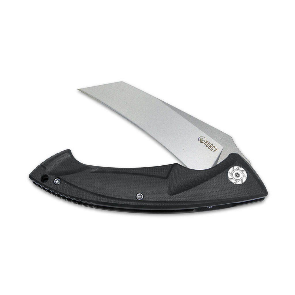 La lame en acier D2 s'ouvre grâce à un flipper et est maintenue en position ouverte par un Liner Lock. Le manche est fabriqué en matériau résistant G10. Le couteau est équipé d'un clip pour le port en poche.