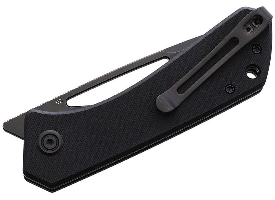 La lame en acier D2 s'ouvre grâce à un front flipper ou avec le pouce via un trou dans la lame, et est maintenue en position ouverte par un mécanisme Liner Lock. Le manche est fabriqué en matériau résistant G10. À l'extrémité du manche se trouve un trou pour une lanière. Le couteau est équipé d'un clip pour le port en poche.
