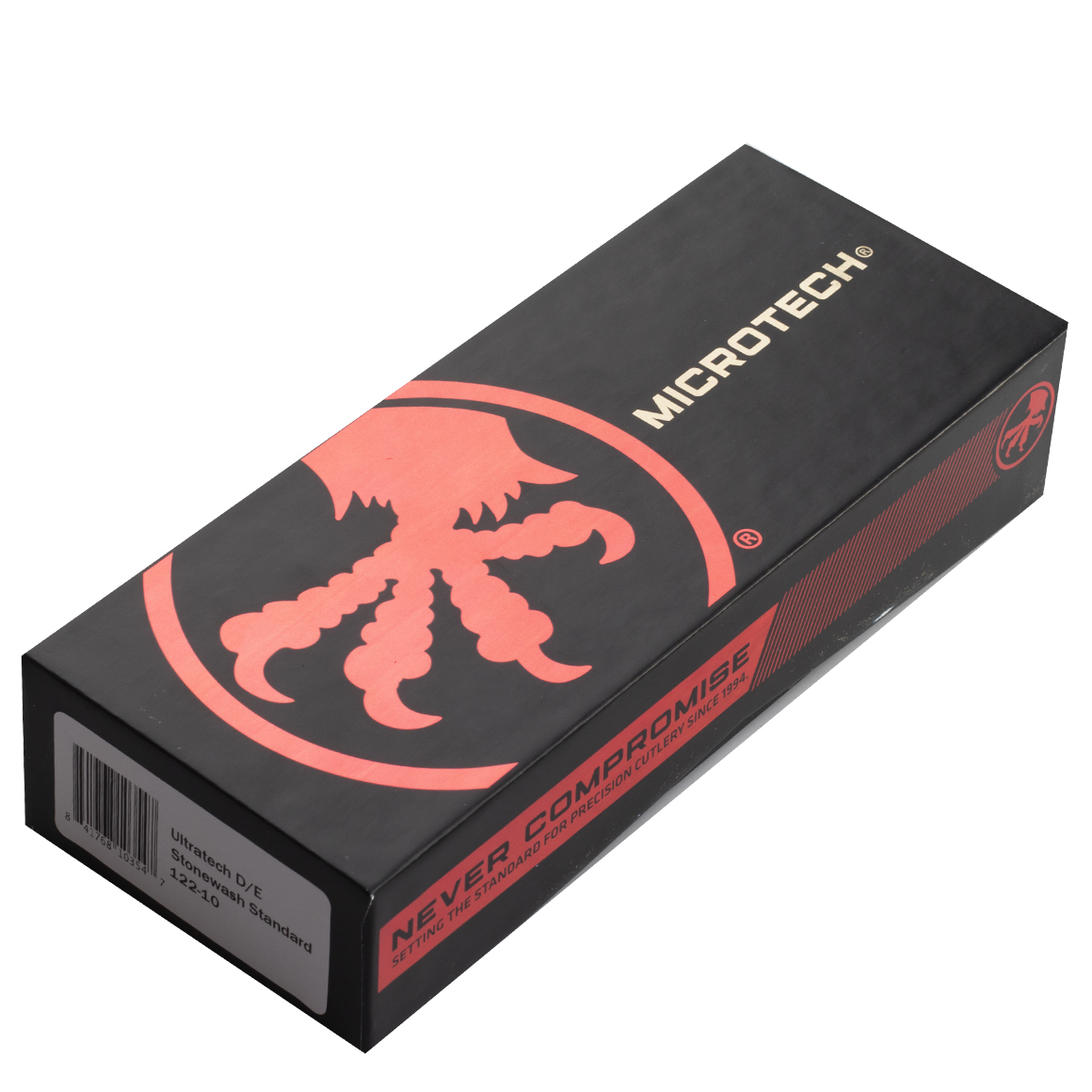 Pour ceux qui ne sont pas familiers avec la technologie Ultratech, il s'agit d'un couteau entièrement automatique avec un mécanisme double action hors du devant, ce qui signifie que la lame se déploie ou se rétracte en appuyant sur un bouton avec le pouce. Avec la technologie Ultratech, Microtech a clairement défini les normes de qualité pour tous les couteaux OTF.