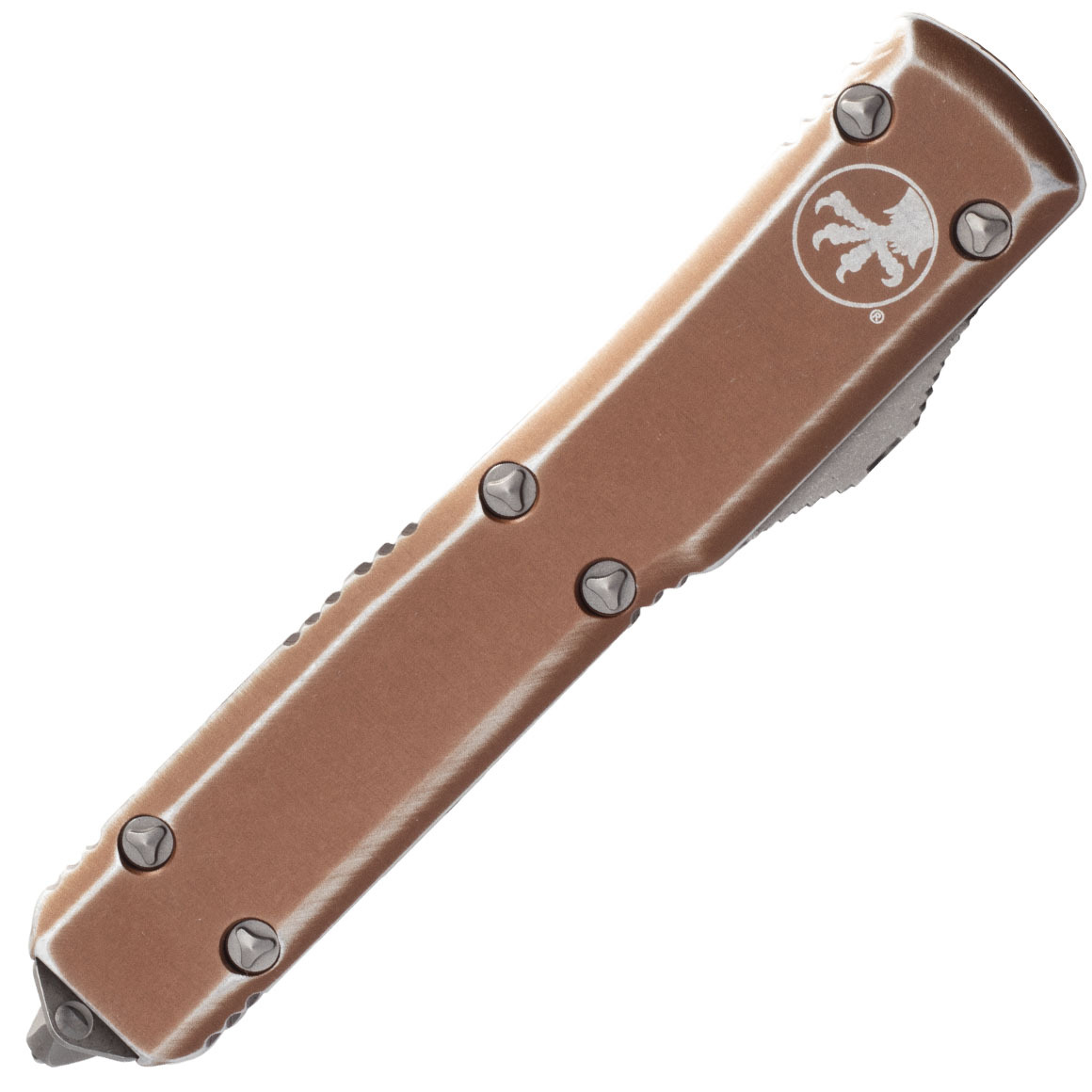 En tant que fleuron de la société Microtech, le couteau Ultratech représente la norme pour la technologie Out-The-Front (O.T.F.). Le design breveté permet à la ressort de lancement de rester au repos en position ouverte et fermée, ce qui réduit considérablement l'usure des mécanismes d'ouverture internes. La poignée en aluminium profilée offre une sensation plus légère et ergonomique et est livrée avec une finition lisse et uniforme.