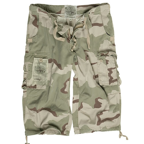 Pantalon 3/4 confortable et de qualité Mil-Tec Air Combat PreWash Desert en couleur camouflage sable en 100% coton lavé. Comprend 2 poches avant, 2 poches arrière avec col et clous, 2 poches latérales avec col et bouton. Ils ont un cordon de serrage interne sur les côtés avec un cordon de serrage, les extrémités des jambes ont également un cordon de serrage à l'aide d'un cordon de serrage. La taille a 2 brevets de traction (après avoir tiré au maximum le tour de taille réduit de 6 cm).