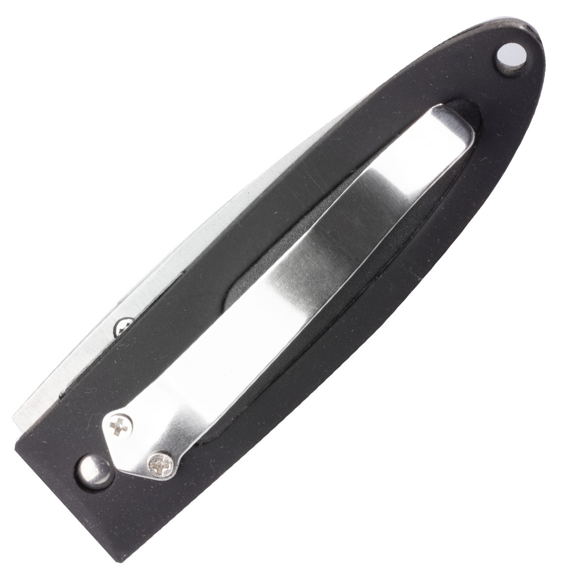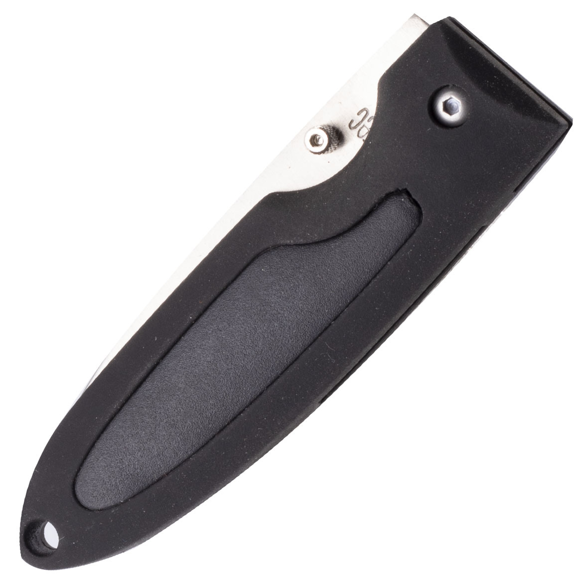 La poignée est en ABS résistant aux chocs en noir avec des inserts en caoutchouc pour améliorer l'adhérence même dans les mains ou les gants mouillés. Il était également équipé d'un clip en acier permettant de fixer le couteau à une ceinture ou au bord d'une poche. La lame en position ouverte est automatiquement fixée avec un insert.