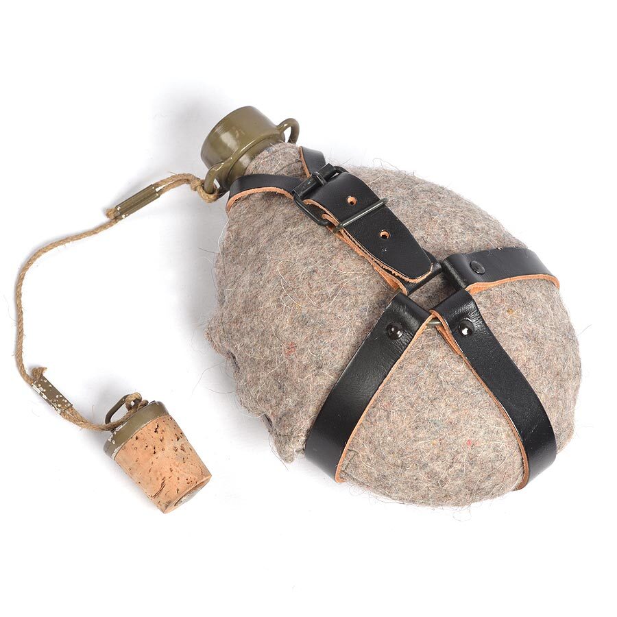 Bouteille de campagne tchécoslovaque Mil-Tec CZ / SK M60 avec couvercle en feutre, bracelet en cuir et bouchon en liège. Convient aux activités de plein air. Volume 0,7 l.