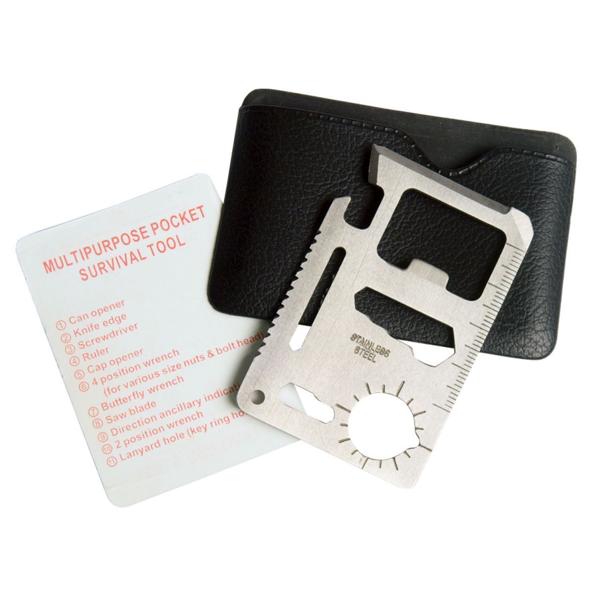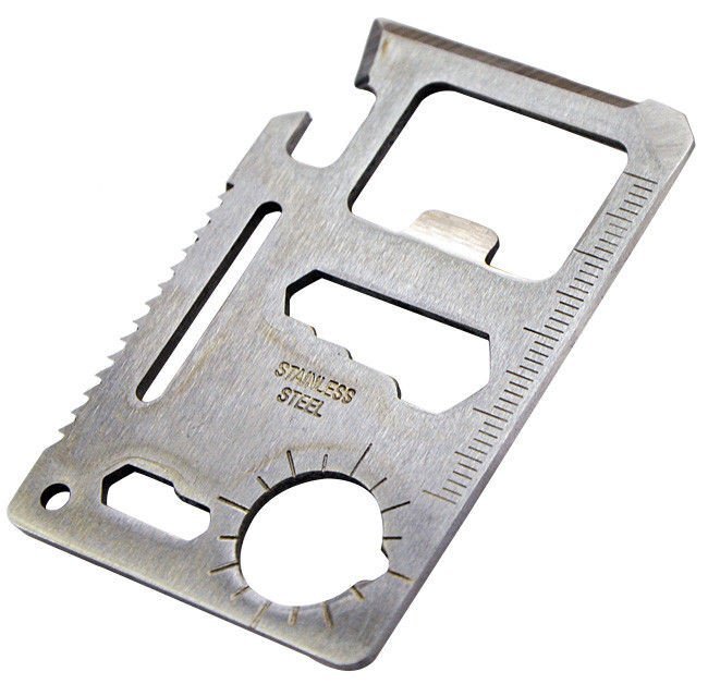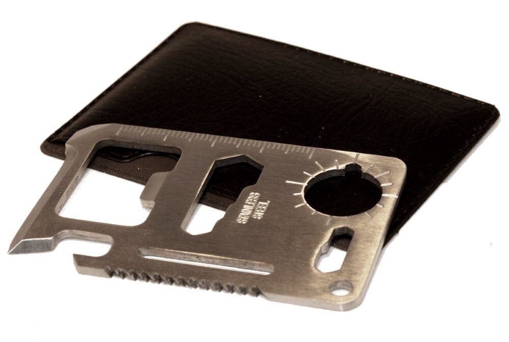 Une carte "crédit" multifonctionnelle avec de nombreuses fonctions différentes qui sera entièrement à votre disposition dans toutes les situations. La carte est en acier inoxydable et en raison de sa petite taille et de son faible poids, elle convient à un usage quotidien, par ex. également dans le portefeuille. La carte a sa propre couverture, vous n'avez donc pas à vous soucier d'endommager l'endroit où vous la porterez.
