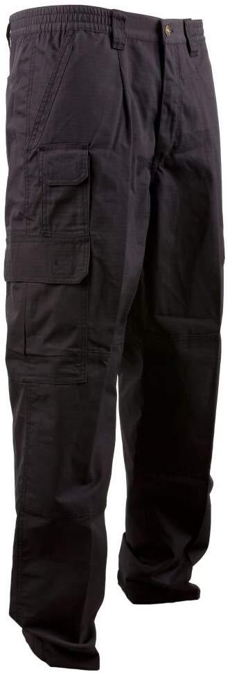Pantalon fonctionnel Mil-Tec Seven Pocket Pants en noir avec 7 poches, composé de 65% polyester et 35% coton (tissu anti-déchirure). Taille élastique, genoux et extrémités de jambes renforcés avec velcro réglable.