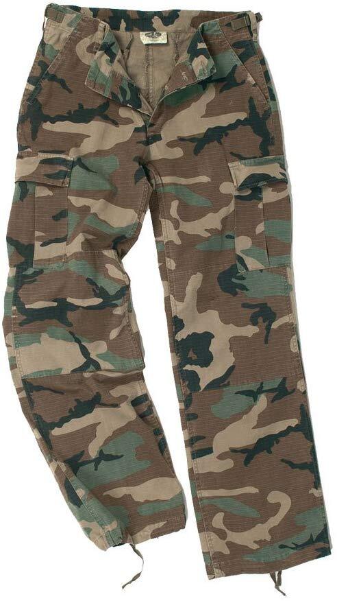 Pantalon long femme Mil-Tec US BDU WOODLAND en couleur camouflage 100% coton, avec taille et renfort genoux réglables. Fermeture boutonnée qui reste alors cachée. Ils ont deux poches principales, deux poches latérales à rabat et deux poches arrière. Cordon de serrage réglable au bas de la jambe.