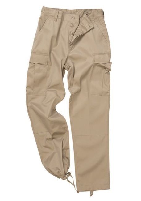 Pantalon de style militaire Mil-Tec US Khaki BDU de couleur marron kaki, composé de 65% polyester et 35% coton. Les boutons sont attachés. Taille ajustable, cordon de serrage en dentelle. Comprend 2 poches mains, 2 poches latérales à rabat et 2 poches arrière.