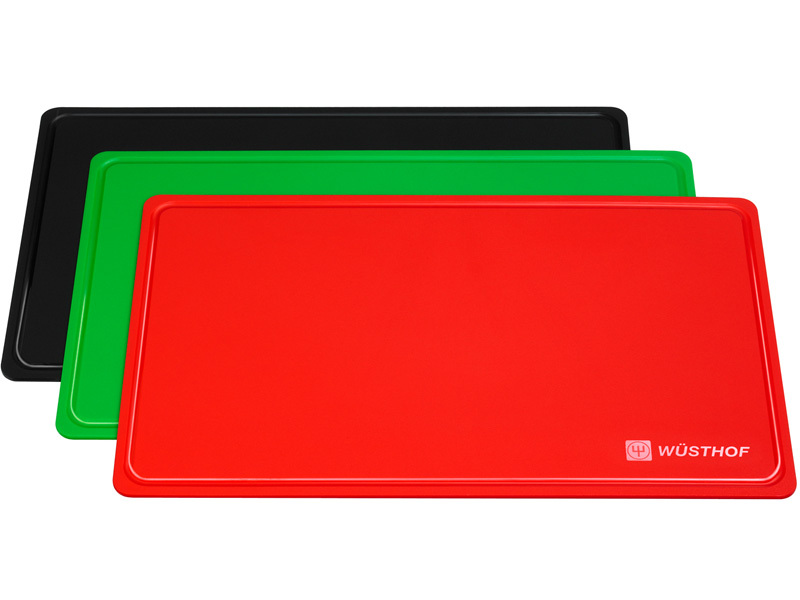 Chaque cuisine a besoin d'un tapis de coupe honnête. Le Wüsthof propose un nouveau tapis de coupe élégant et fonctionnel en polyuréthane thermoplastique résistant aux rayures (TPU), apportant des couleurs fraîches à votre cuisine. Un matériau spécial avec un haut degré de flexibilité protège les lames sensibles des couteaux. Les couteaux restent donc affûtés plus longtemps. La matière plastique n'absorbe pas les odeurs et les odeurs et peut être stérilisée. Il suffit de verser de l'eau bouillante sur le tampon en plastique à 150 ° C et il sera stérilisé pendant 30 secondes. Tapis de coupe moderne pour couteaux tranchants, indispensable dans chaque cuisine.