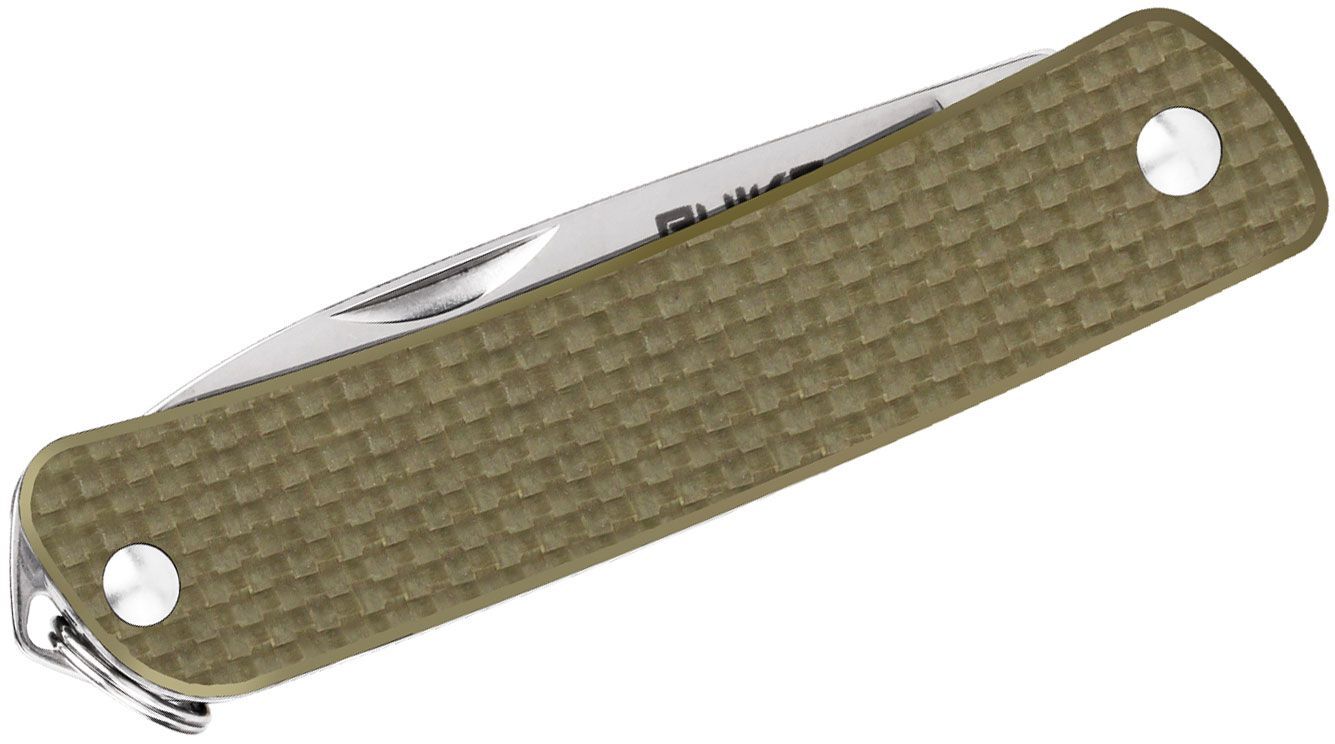 La lame est fabriquée en acier inoxydable Sandvik 12C27. Elle s'ouvre grâce à un ongle sur la lame et le couteau ouvert est sécurisé par un système de verrouillage Slipjoint. Le manche texturé est fabriqué en matériau G10.