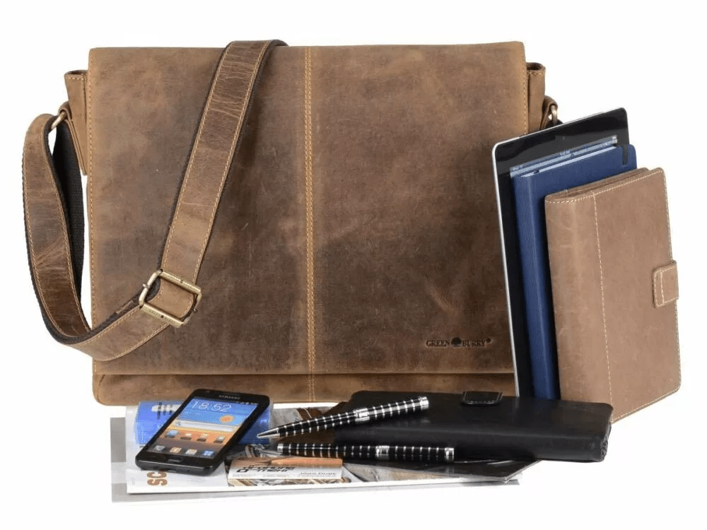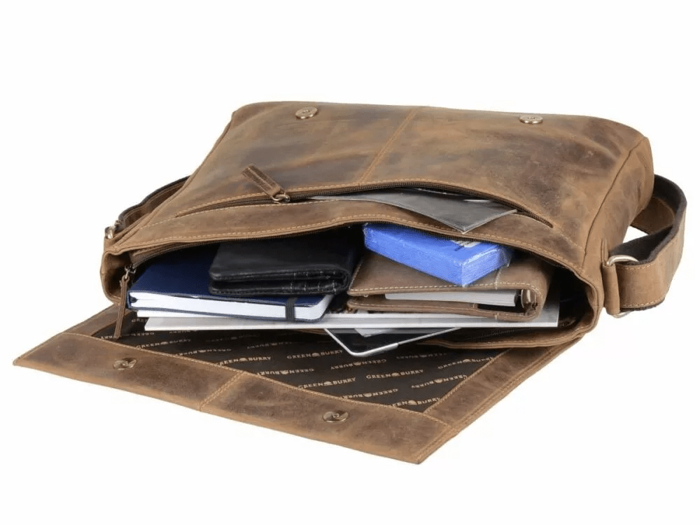 Sac à bandoulière en cuir GreenBurry 39x30cm "Vintage" brun antique