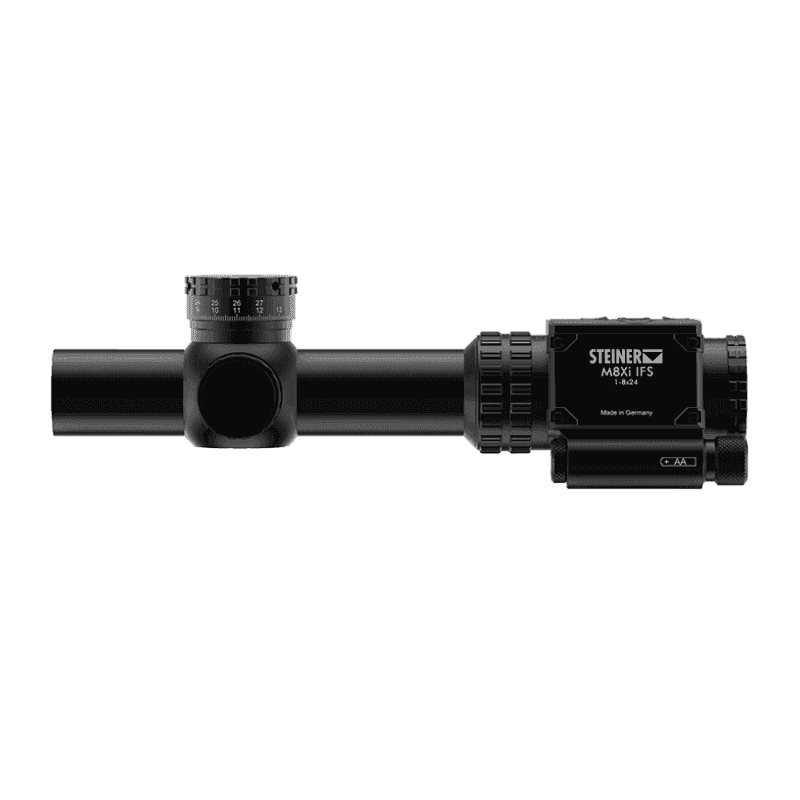 Lunette de visée nouvelle Steiner M8Xi 1-8x24 | Réticule G2B Mil Dot IFS avec zoom 8x et excellent champ de vision de 4,8 à 34,2 m par 100 m. Avec un affichage intégré, il fournit des informations importantes en temps réel. Résolution plus élevée et plus de flexibilité. Il doit résister aux conditions les plus difficiles.
