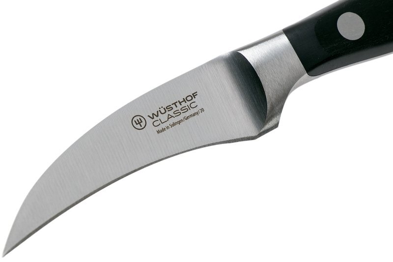Le couteau à éplucher de la gamme Wusthof Classic se distingue certainement par sa forme. La forme incurvée de la lame est adaptée pour éplucher et nettoyer les fruits et légumes de manière classique, mais aussi pour découper et sculpter.